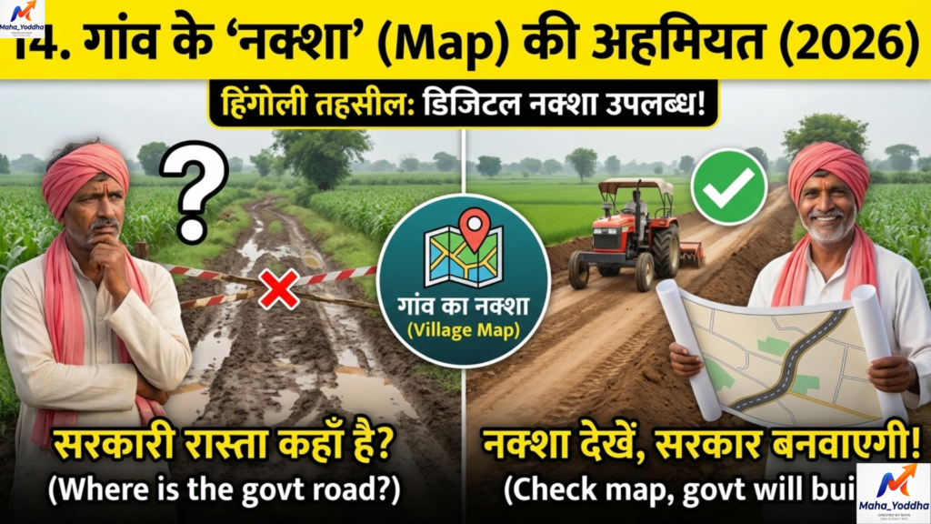कई बार हमें पता ही नहीं होता कि हमारे खेत का सरकारी रास्ता कहाँ से है। टिप: सबसे पहले अपने गांव का ‘नक्शा’ और ‘कमी-जास्ती पत्रक’ देखें। अगर नक्शे पर रास्ता है, तो सरकार उसे बनवाकर देने के लिए बाध्य है। हिंगोली के तहसील कार्यालय में आप डिजिटल नक्शा देख सकते हैं।